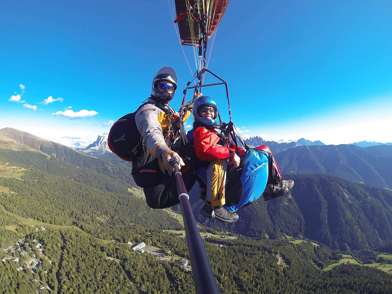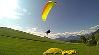 Der Start erfolgt auf einer sanften Wiese, wir laufen ein paar Meter an und schon fliegen wir durch die Luft.